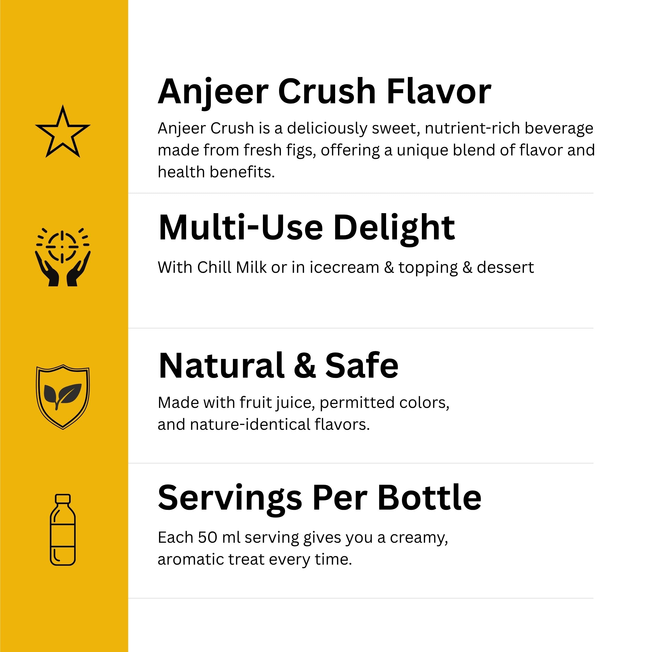 Experience the rich, indulgent taste of Moraz Anjeer Crush, lovingly made from real dried fig (anjeer) pulp to bring authentic fruity depth to your creations. This luscious 750 ml bottle is perfect for crafting creamy milkshakes, lassis, faloodas, or layering elegant dessert toppings. Simply stir it into chilled milk, water, or soda for a luxurious fig-infused drink that captures warmth, sweetness, and texture in every sip. With its convenient shelf life of 12 months and no refrigeration needed until opened, Moraz Anjeer Crush is both a flavorful and practical addition to any kitchen—from casual home use to café excellence.