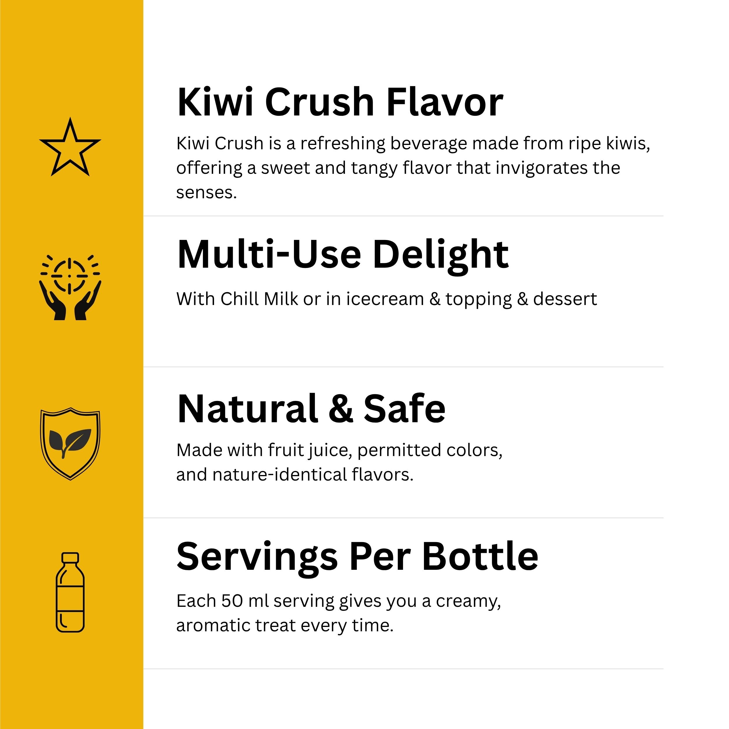 Revitalize your senses with Moraz Kiwi Crush, a vibrant green syrup bursting with the tangy sweetness of real kiwi pulp. Crafted to elevate any drink or dessert—from creamy milkshakes to fizzy mocktails, icy slushes, and decadent toppings—this 750 ml bottle is packed with tropical energy. Its smooth, velvety texture provides the perfect balance of fruity zest and refreshing coolness. Simply mix one part Kiwi Crush with five parts chilled milk or water for instant indulgence.With a generous 12-month shelf life and no refrigeration required until opened, Moraz Kiwi Crush is a convenient pantry essential for both family kitchens and café menus
