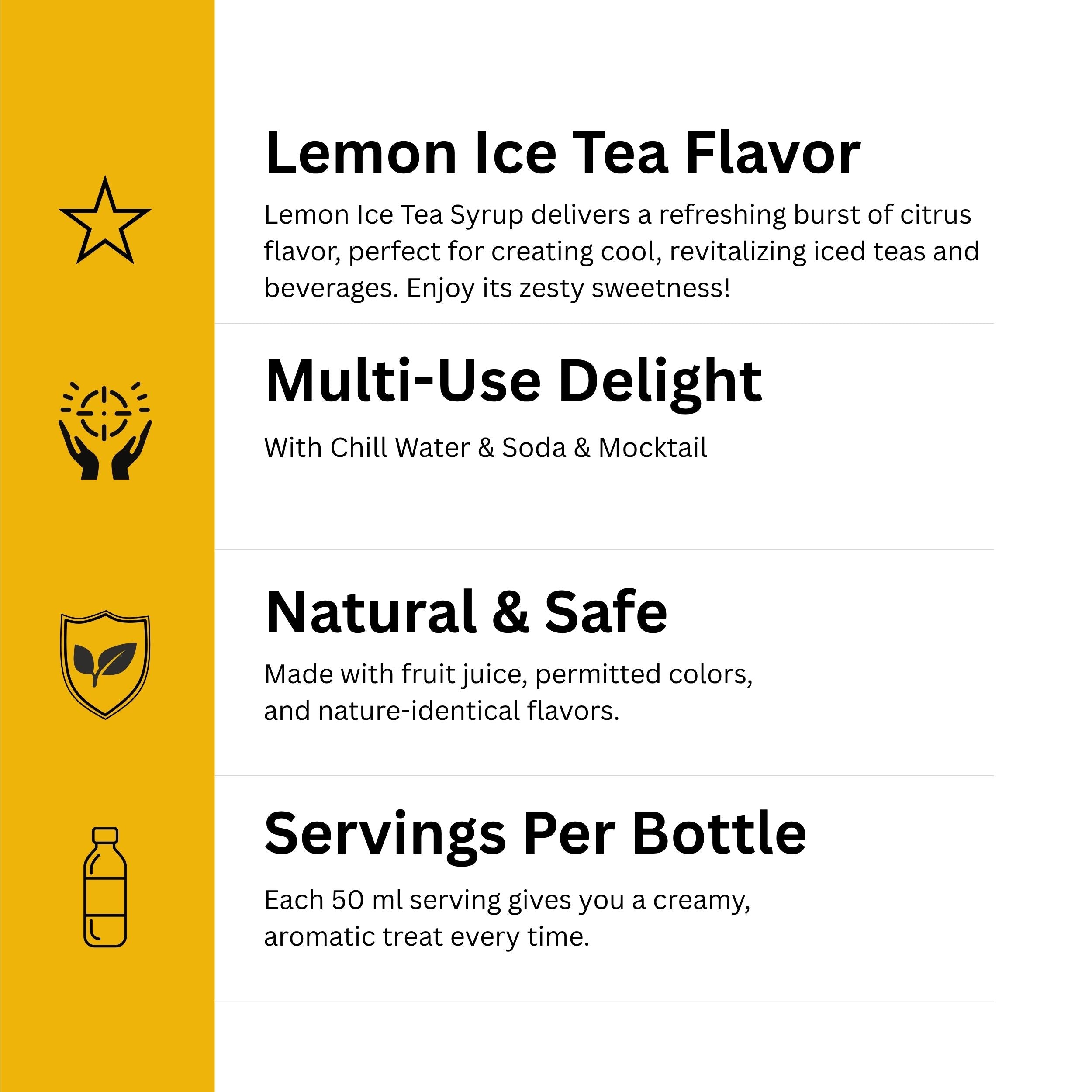 Bring café-quality refreshment home with Moraz Lemon Iced Tea Syrup—a tangy blend made from real lemon juice and premium tea extracts. Perfectly designed to elevate iced teas, lemonades, mocktails, and summer slushes, this 750 ml bottle delivers a burst of citrusy zest in seconds. Beyond its irresistible flavor, this syrup combines the antioxidant power of tea with vitamin C and flavonoids from lemon, which may help support metabolism, digestion, immunity, and hydration.Just mix a portion with chilled water or soda over ice and enjoy a vibrant, healthy drink all season long.