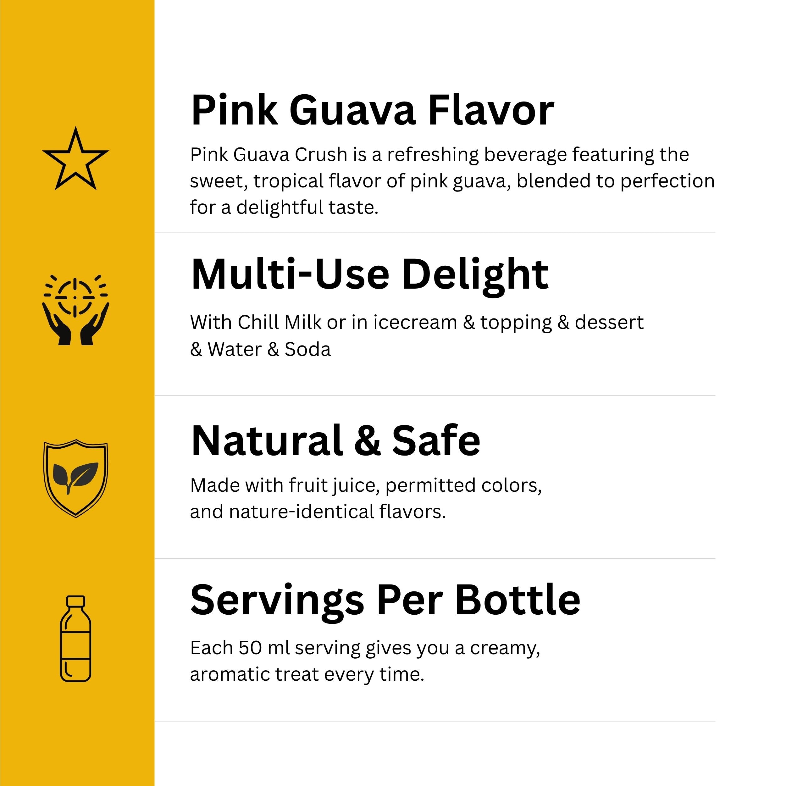 Elevate your culinary creations with Moraz Pink Guava Crush, a luscious, pulpy syrup made from real pink guava sourced directly from trusted orchards. With 27% real fruit pulp, this vibrant 750 ml bottle captures the aromatic sweetness and subtle tang of ripe guavas, enriched with natural vitamin C, dietary fiber, antioxidants, and potassium. Perfect for refreshing mocktails, creamy milkshakes, indulgent faloodas, fruity smoothies, or as a decadent dessert drizzle—it's as versatile as it is delicious. Plus, it boasts a generous 12-month shelf life and requires no refrigeration until opened, making it a convenient pantry staple for home kitchens and cafés alike.